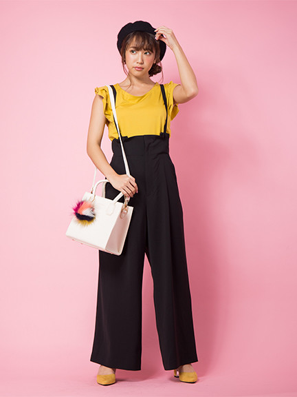 フレア袖トップス×サス付パンツセット ---